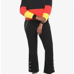 Best Sale ✨ Disney Mickey Mouse Color-Block 👧 Girls Crop Long-Sleeve Polo 👚 Shirt Plus Size ❤️
