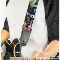 Deals ๐ The Nightmare Before ๐ Christmas 4 Character Group Cemetery Scene Guitar Strap ๐