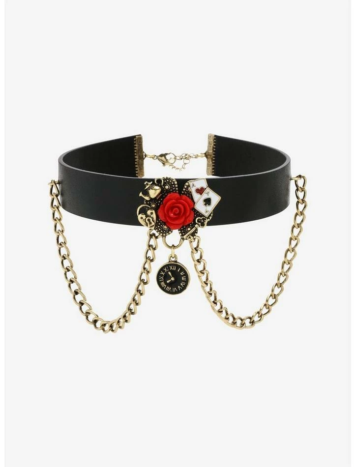 Cheap π― Alice In Wonderland Rose Close Chain Faux Leather Choker π