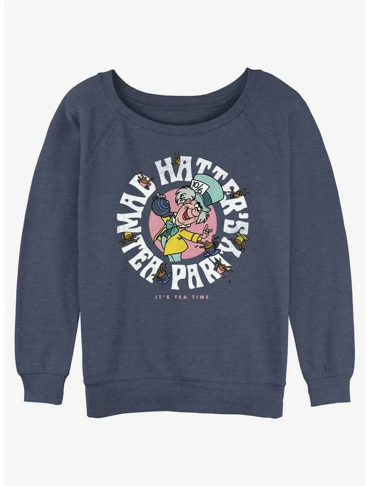 Discount ⭐ Disney Alice in Wonderland Mad Hatter’s Tea Party 👧 Girls Slouchy Sweatshirt 🎁