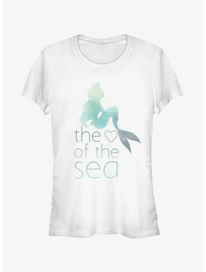 Lose your heart to the Disney The Little Mermaid Ariel Heart of Sea T-Shirt! An ombre print of Ariel fades from green to blue across this Little Mermaid tee.