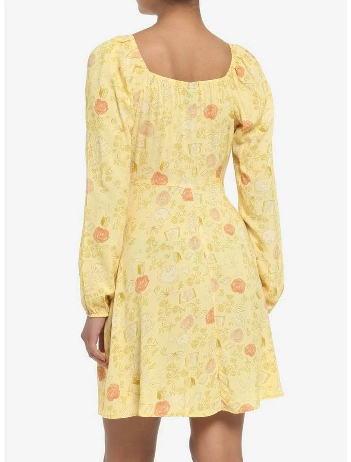Best Pirce 😀 Disney Beauty And The Beast Floral Long-Sleeve 👗 Dress 🎁