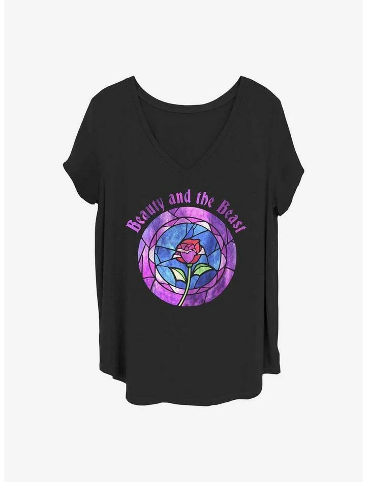 New 👍 Disney Beauty and the Beast Glass Rose 👧 Girls T-Shirt Plus Size 🛒