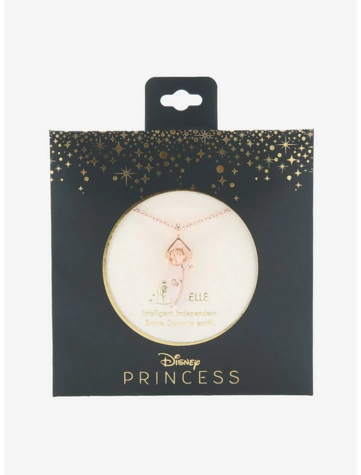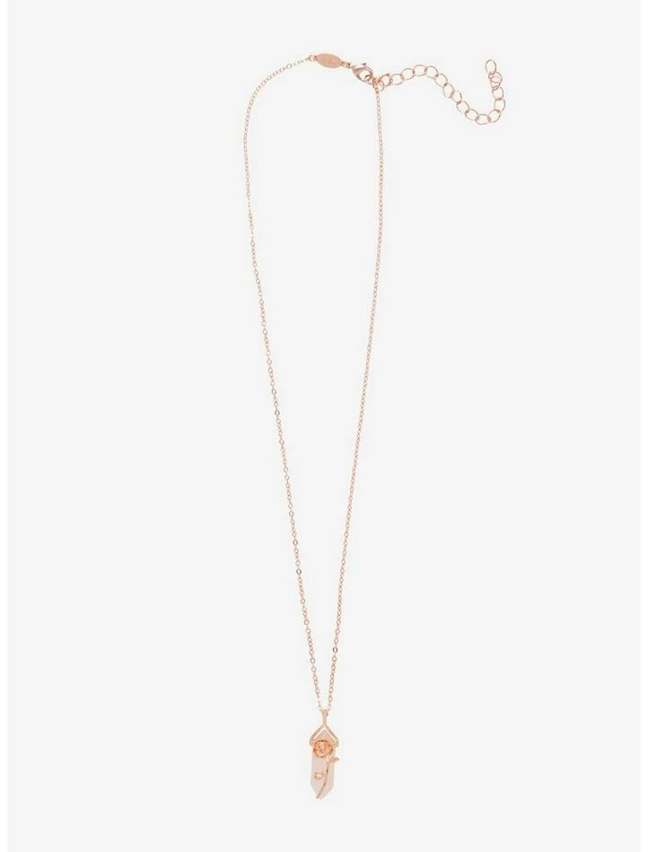Though Beast’s rose may be wilting, this rose necklace will last forever! From Beauty and the Beast, this rose gold chain necklace features a beautiful pink crystal pendant with a rose charm attached.