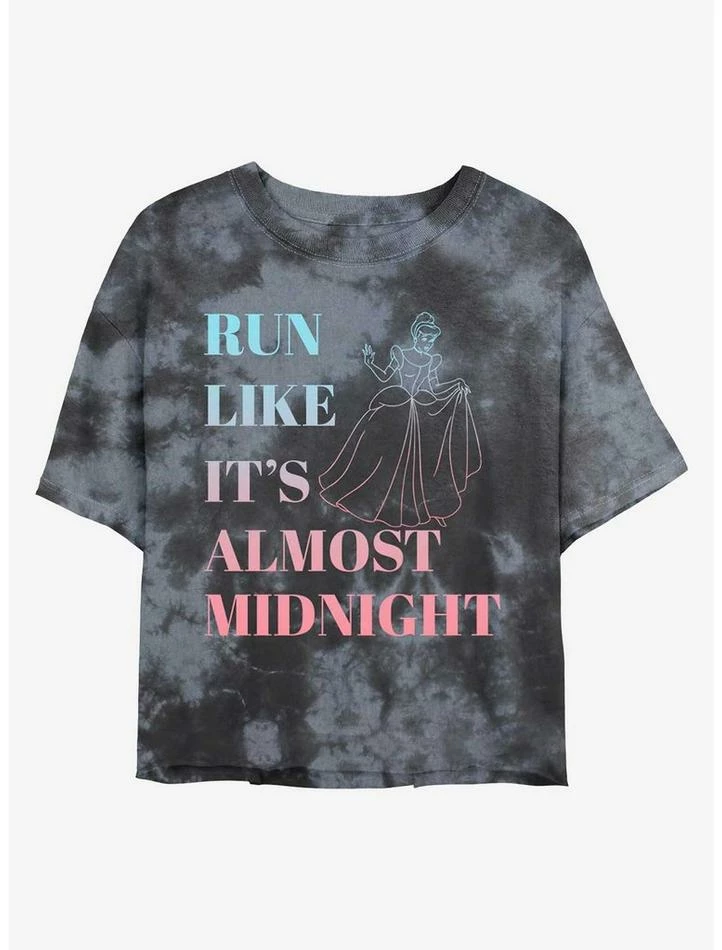 Cheap 🔥 Disney Cinderella Run Like It’s Almost Midnight Tie-Dye 👧 Girls Crop T-Shirt ⌛
