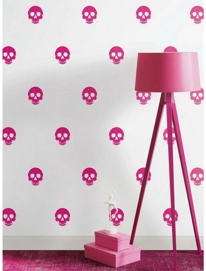 Design has a straight match with a 18″ repeat, covers 28.3 sq ft. Disney’s blockbuster movie, Cruella, comes to life in your home with this runway design inspired by the film’s fashion in this Cruella Glamour Skulls peel and stick wallpaper from in chic hot pink and white.ย