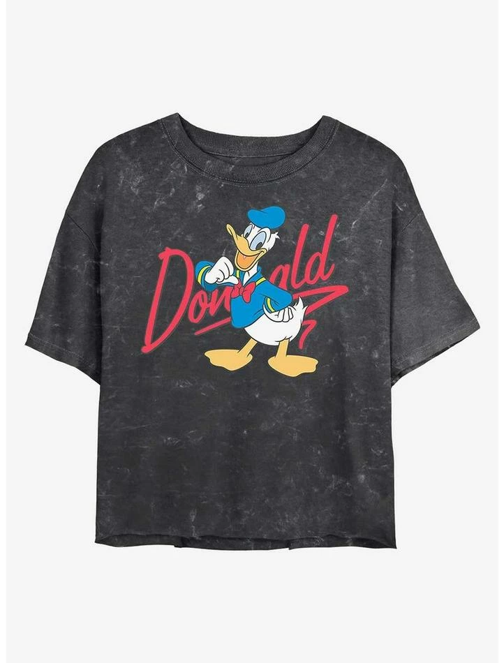 New ๐ Disney Donald Duck Signature Donald Mineral Wash Crop ๐ง Girls T-Shirt ๐