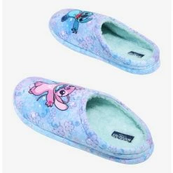 Get cozy with your favorite space couple! These Lilo & Stitch slippers feature Stitch and Angel ready to embrace, over a pastel floral background. Comes with fuzzy lining.