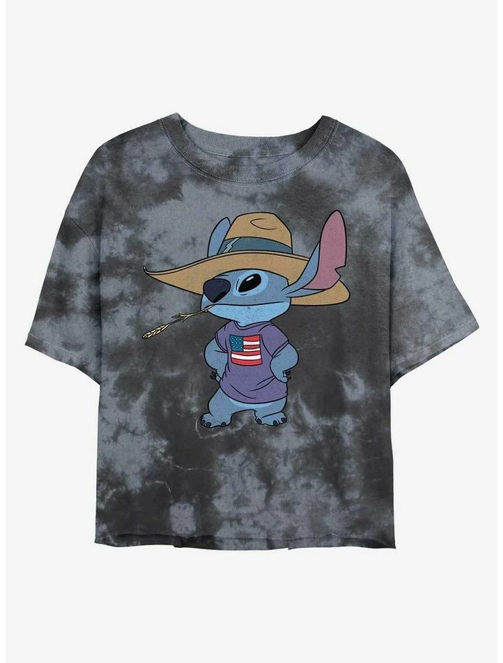 Best Sale ✨ Disney Lilo & Stitch Cowboy Stitch Tie-Dye 👧 Girls Crop T-Shirt 🛒