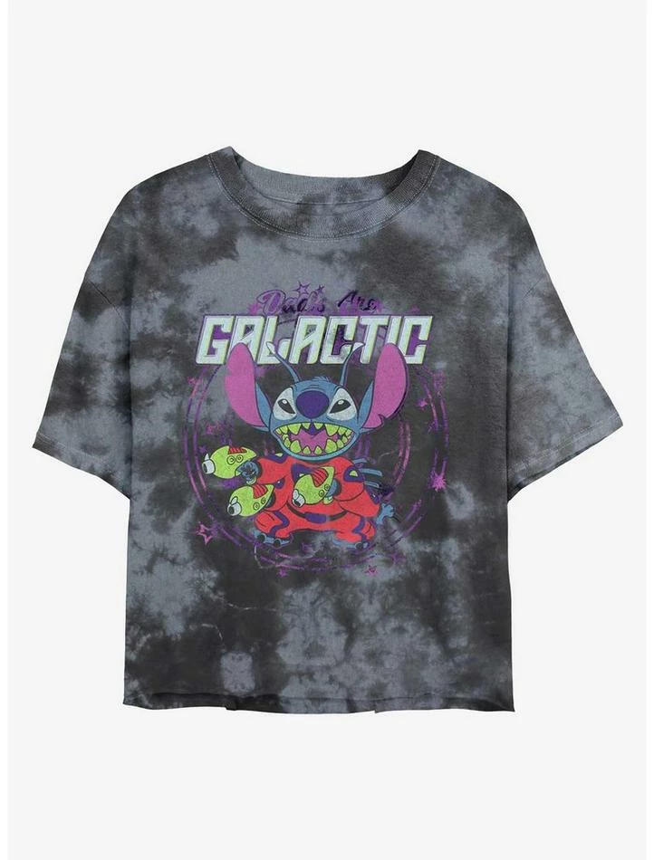 Cheap ๐งจ Disney Lilo & Stitch Galactic Dad Tie-Dye ๐ง Girls Crop T-Shirt ๐