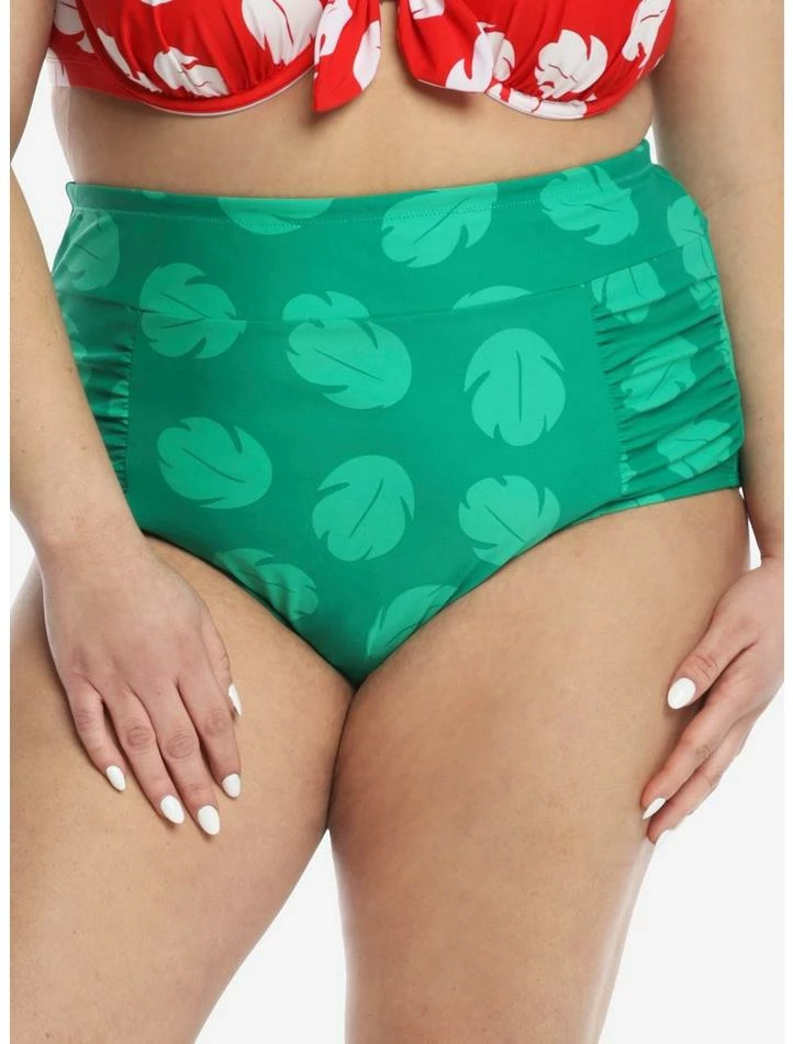 Promo 🔔 Disney Lilo & Stitch Leaf High-Waisted Swim Bottoms Plus Size 😀