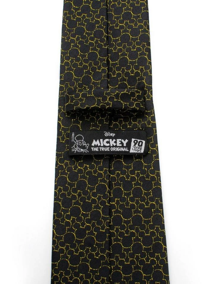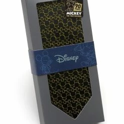 Capture the spirit of Mickey’s 90th birthday with this 100% silk tie. Featuring a compact Mickey Mouse silhouette in fine gold thread, this bold black tie will have everyone smiling. Officially licensed by Disney. Approximately 59″ x 3″, 100% silk.