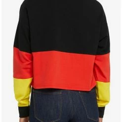 Add some more Disney magic to your wardrobe with the one and only Mickey Mouse! This long-sleeve cropped polo top features an embroidered patch of Mickey Mouse on the chest, with color blocking inspired by his signature colors on the sleeves and under the bust. Comes with contrast button placket and drop shoulders for an oversized look.