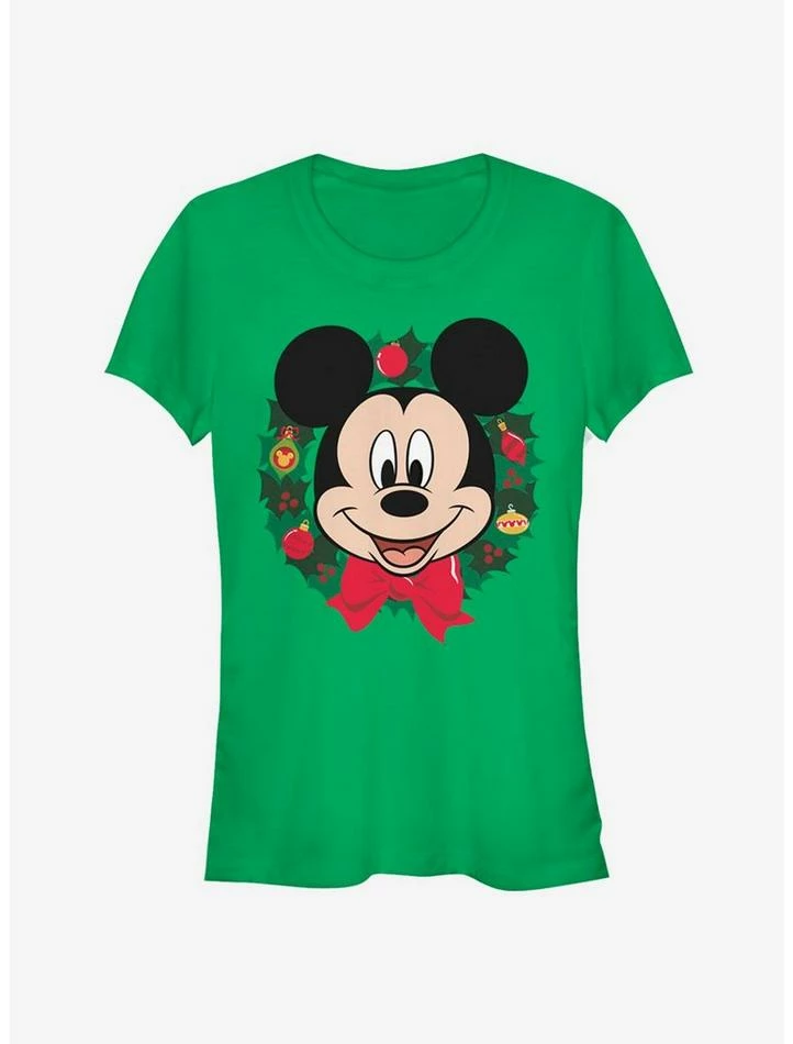 Budget 🥰 Disney Mickey Mouse Face Holiday Wreath Classic 👧 Girls T-Shirt ✔️