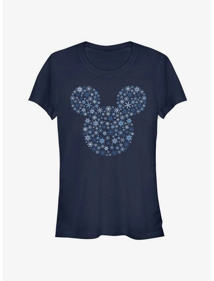 Flash Sale 🔥 Disney Mickey Mouse Holiday Head Snowflake Outline Classic 👧 Girls T-Shirt 😉
