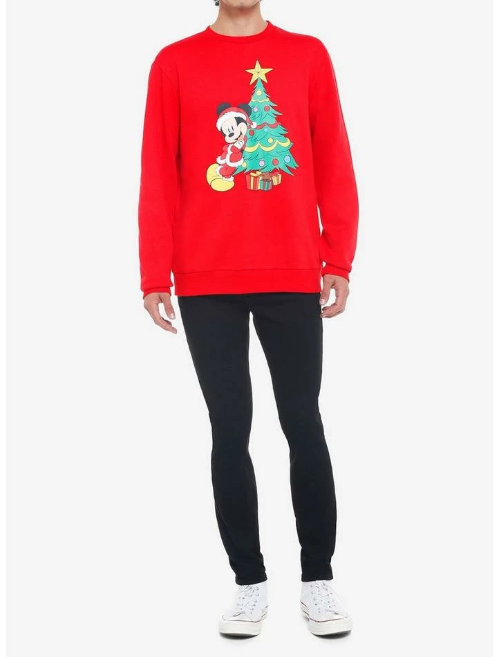 Have a cozy little Christmas with Mickey Mouse! He’s ready to help you deck the halls in the most festive sweatshirt. This jolly red crewneck features Mickey Mouse dressed in a Santa outfit and posing next to a Christmas tree.