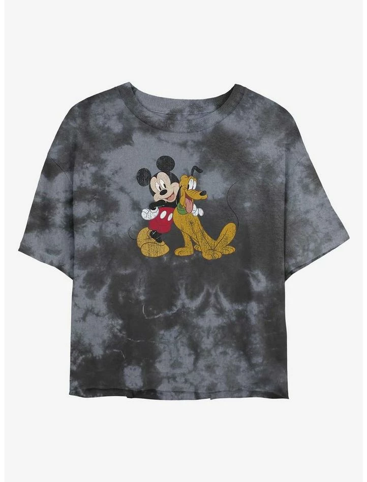 Best Pirce 🔥 Disney Mickey Mouse Mickey and Pluto Tie-Dye 👧 Girls Crop T-Shirt 😉
