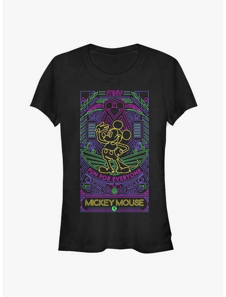 New ๐ Disney Mickey Mouse Neon Line Art Classic ๐ง Girls T-Shirt ๐ฅฐ
