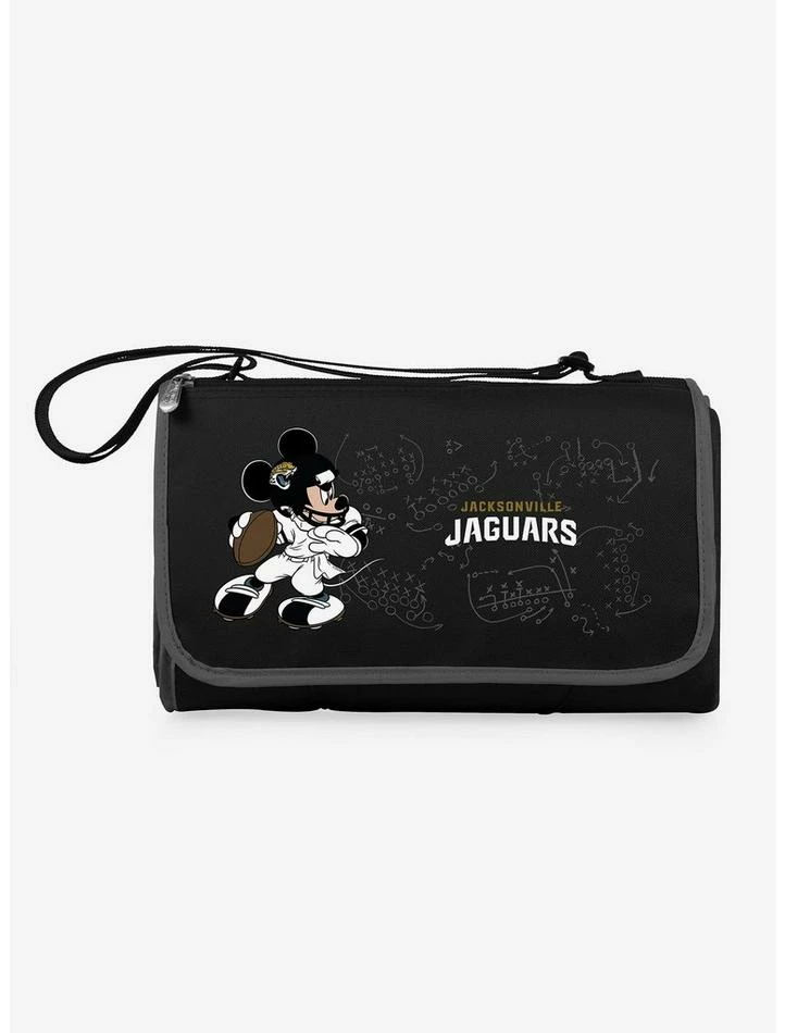 The Mickey Jacksonville Jaguars Blanket Tote Outdoor Picnic Blanket is a picnic necessity for NFL superfans and Disney devotees. Providing nearly 21 square feet of the snuggly-soft fleece seating area on a water-resistant underside, it folds into a sleek compact carry tote with a shoulder strap. And on that tote? Mickey Mouse playing quarterback for your favorite NFL team! The security pocket in the folded tote flap provides extra storage for your essentials. Whether it’s a chance to kick back with the family at the park, cheer on your favorite team, play at the beach, or even lounge in a furniture-free apartment, you can use your perfectly portable travel blanket to easily upgrade any outdoor hang. It’s clear: this portable blanket tote is a total Disney touchdown.