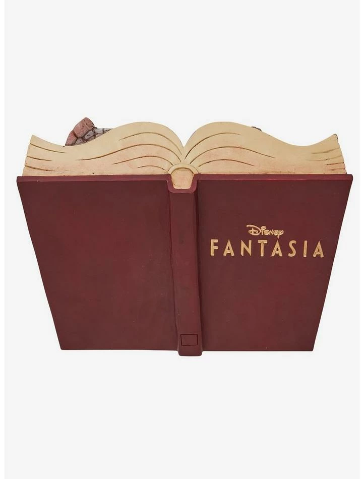 Jim Shore re-imagines Fantasia in fantastic fashion in this enchanting statuette by Jim Shore. Mickey Mouse plays sorcerer as he enchants broomsticks to do chores while mentor Yen Sid watches. The complete scene rests inside the pages of a storybook.