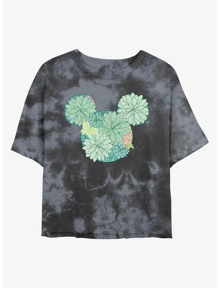 Coupon 🛒 Disney Mickey Mouse Succulents Tie-Dye 👧 Girls Crop T-Shirt ✨