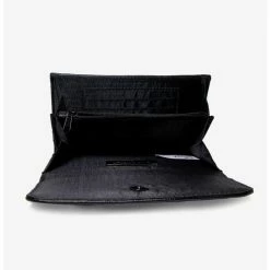 Stylish and sleek, this Minnie Mouse ears and bow fold over wallet is made from vegan leather. It measures 6.5 x 4.5 x 1.0 inches and features 2 Large Pockets, 3 card slots, and 1 coin zipper.