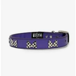 This Disney dog collar features the iconic Minnie Mouse polka dot bow on a purple polyurethane strap. Includes a metal buckle and charm.
