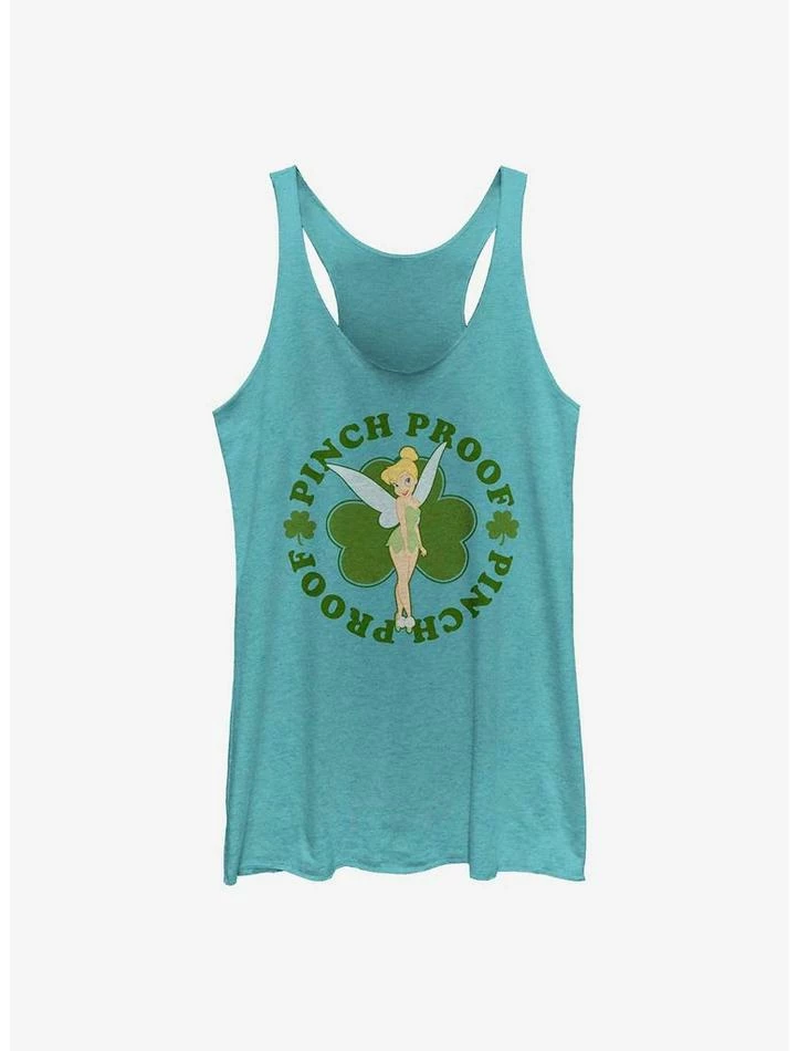 Don’t even think of pinching this pixie! Tinker Bell shows why she’s forever pinch proof on this tahiti blue racerback tank.