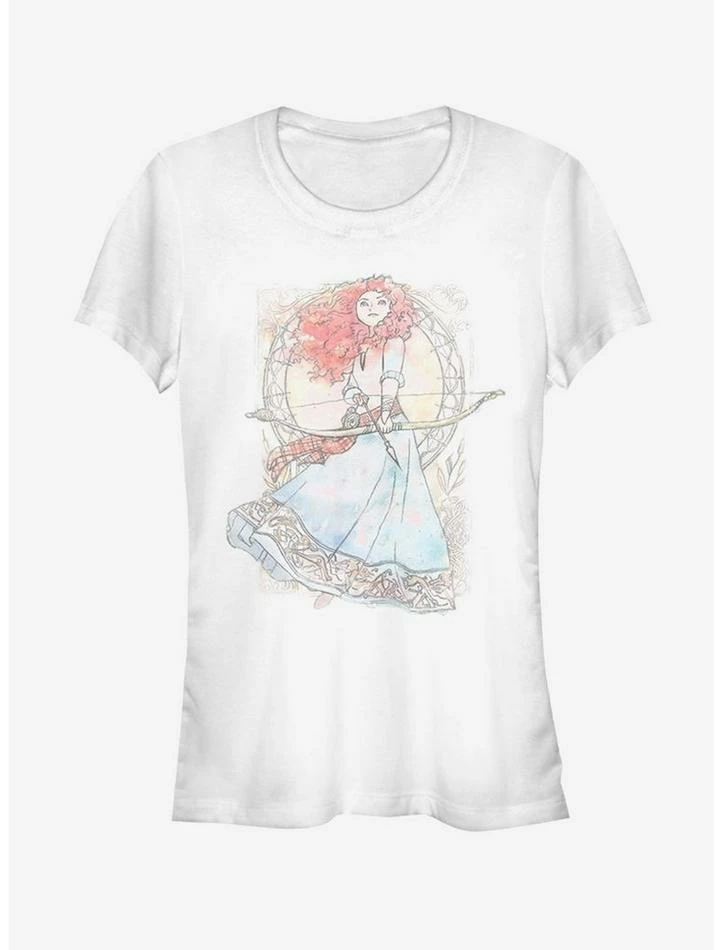Carve your own path in this fitted white tee featuring gorgeous watercolor-inspired imagery of Merida from Disney’s Brave.