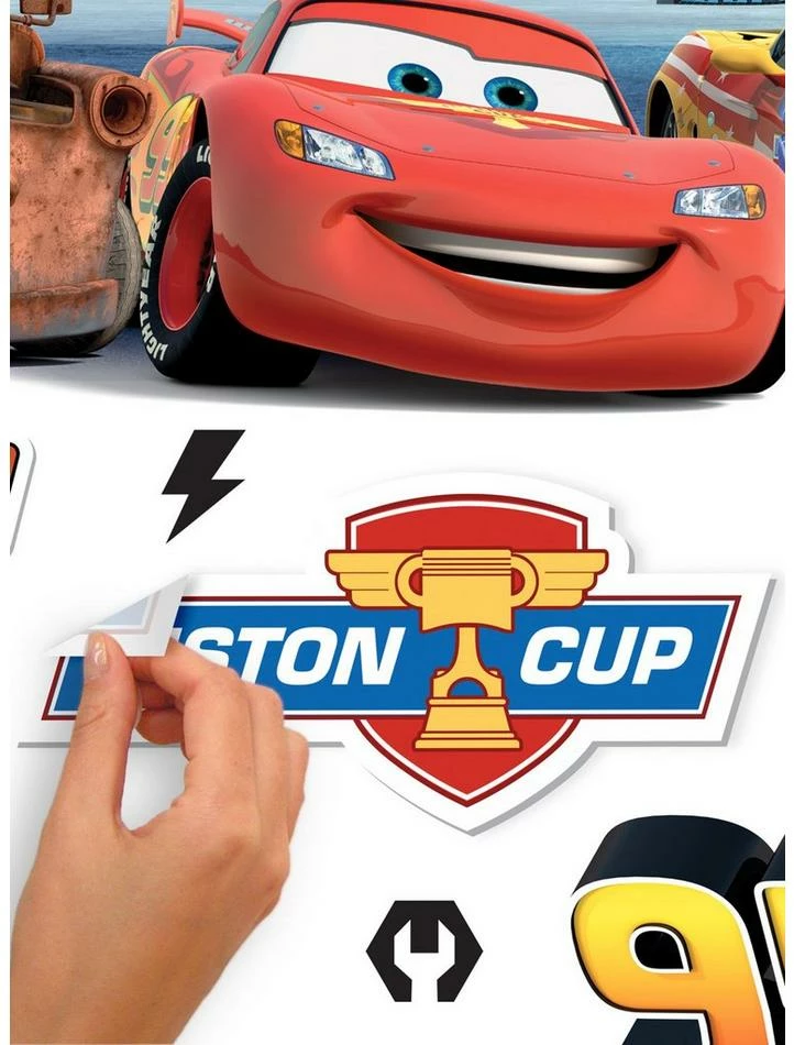 Rev up your engines for fun with these Cars Peel and Stick Giant Wall Decals from RoomMates complete with an entire set of alphabet letters. Personalize your child’s bedroom or play area with Mater, Lightning McQueen, Cruz Ramirez, and Sally Carreran included in this officially licensed Disney Pixar set. Assemble in minutes for the ultimate racing adventure, just peel the backing from the decal and stick to a smooth, flat surface. For more unique peel and stick designs featuring your child’s favorite characters, browse our entire selection of Disney wall decals! RoomMates wall decals are an easy and affordable way to decorate in minutes. Reposition or remove them effortlessly with no remaining sticky residue or damage to walls. Includes 133 decal(s) size(s): 1.08 inches x 0.94 inches to 35.81 inches x 19.65 inches.
