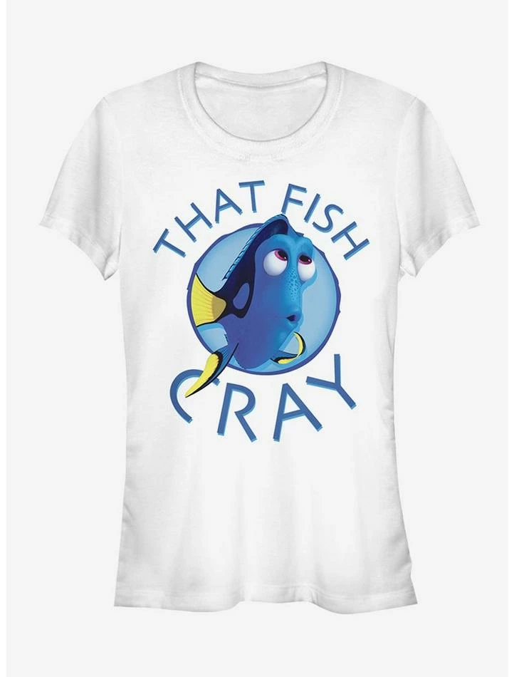 Dory is a little odd but she’s proud of it with the Pixar Finding Dory That Fish Cray Juniors’ T-Shirt! This funny fitted Dory tee reads “That Fish Cray” in blue text down the front.