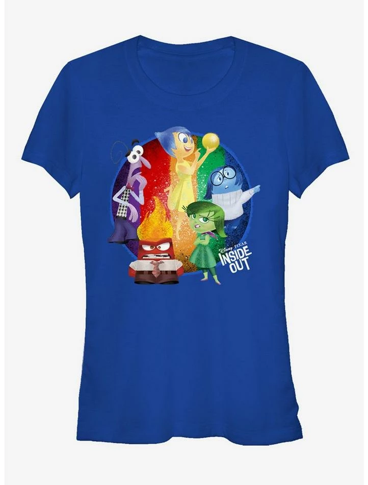 Help preserve Riley’s personality islands with the Inside Out Riley’s Emotions Circle Royal Blue T-Shirt! A colorful circle printed on the front of this cute Inside Out shirt features all of Riley’s emotions: Fear, Joy, Sadness, Disgust, and Anger. 100% Cotton.