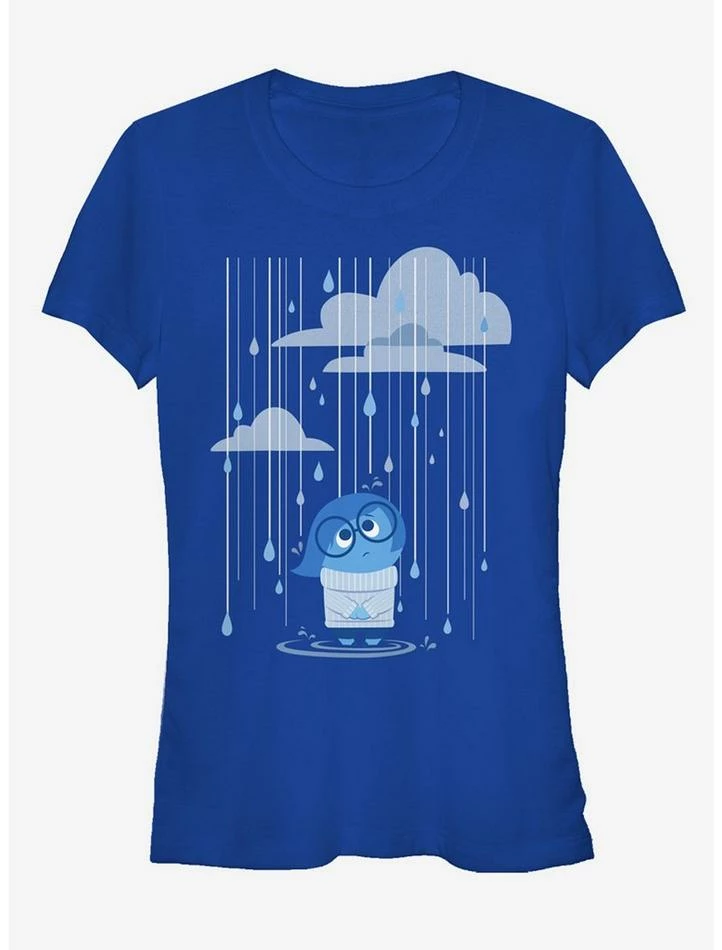Rain rain go away and come again another day…so we can wear the Inside Out Sadness Rain Royal Blue T-Shirt and play! This cute fitted blue Inside Out shirt features Riley’s bluest emotion, Sadness, standing under a rain cloud on the front. 100% Cotton. Runs small, size up.