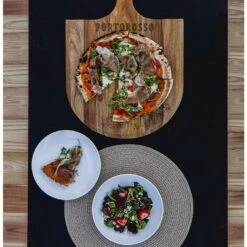 The Acacia Wood Pizza Peel is a pro-grade pizza board with a beveled edge to make it easier to transfer pizzas and bread in & out of the oven (or your fancy wood-fired pizza oven!). With a tapered handle for a steady and comfortable grip, and the beautiful natural acacia wood grain, this pizza paddle looks equally lovely on the table or hanging in your kitchen.
