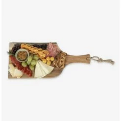 The centerpiece of every dinner party or wine & cheese tasting, the Artisan 18″ Acacia Serving Plank can be used as a cheese board, a bread board, or for cutting vegetables. With a live edge on the side of the board and rustic rope on the end of the handle, this cutting board looks equally lovely on the table or hanging in your kitchen.