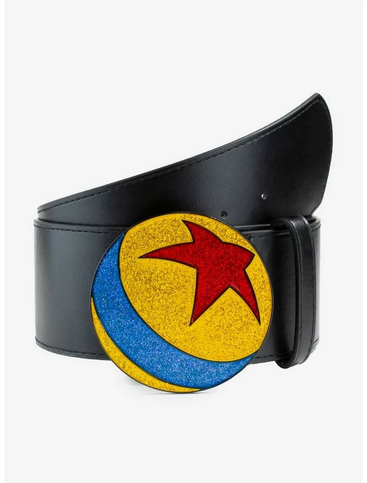 This Disney/Pixar belt is made from vegan leather and features a sparkly Luxo Ball buckle. This belt is 2.75 inches wide and adjusts to fit 23 to 32 Inches. Does not fit through pant loops.