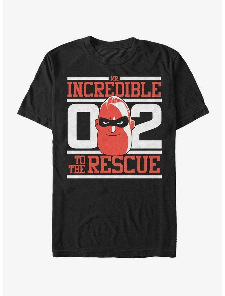 Everyone needs a little help when the going gets tough. This tee comes to the rescue. Mr. Incredible is framed by “Mr. Incredible 02 to the Rescue” in white and red print down this cool Incredibles tee.