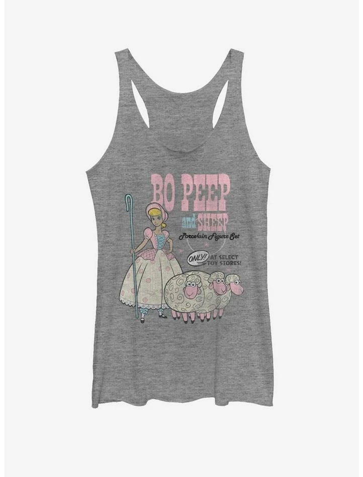You won’t find Bo Peep and Sheep at any old toy store. The pretty porcelain figurine and her friends are available at select toy stores only. This heathered grey tank honors a Toy Story rarity.