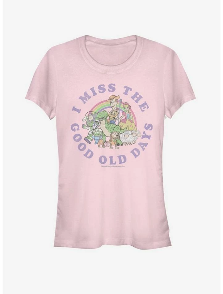 Ah, those good old days with Andy. Woody remembers them well! Join the Toy Story gang in reminiscing with this fitted light pink tee.