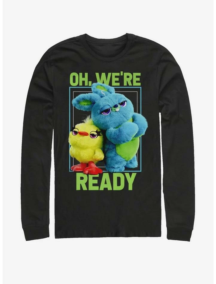 Hey Ducky, hey Bunny – you ready? Oh, we’re ready. This awesome black long-sleeve tee features the well-prepared twosome from Toy Story 4 screened on the front.