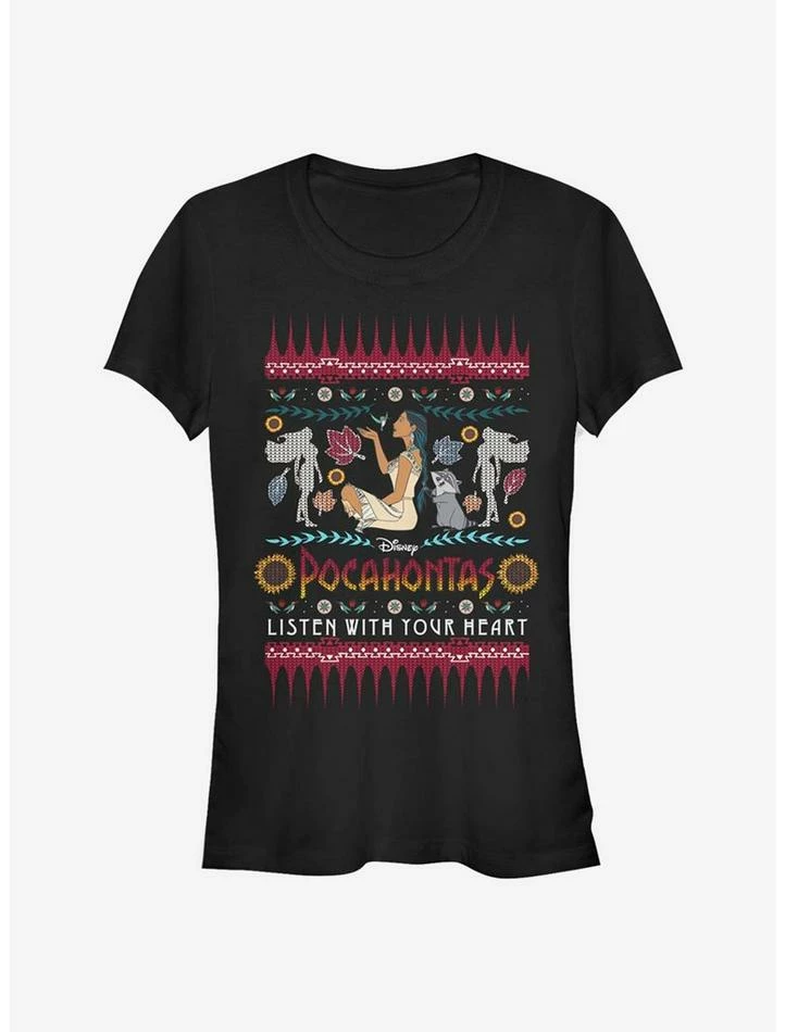 Discount ✨ Disney Pocahontas Ugly Holiday Sweater 👧 Girls T-Shirt ❤️