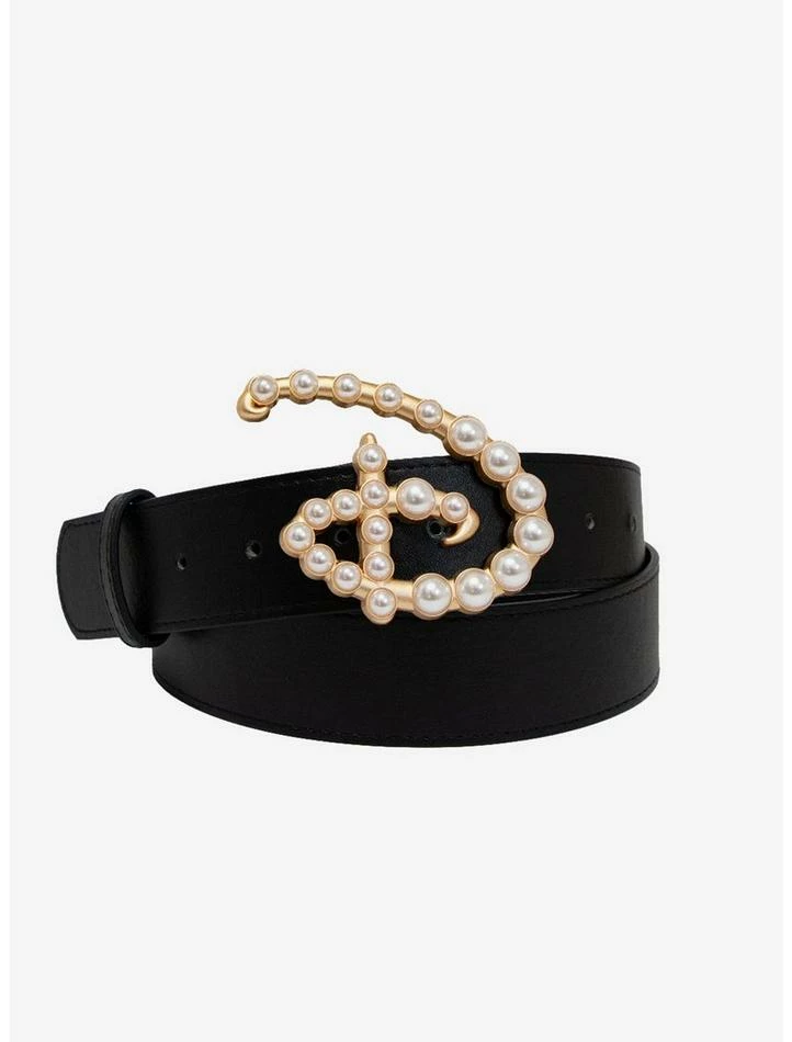 Discount ๐งจ Disney Signature D Logo Faux Pearl Buckle Vegan Leather Belt โ๏ธ