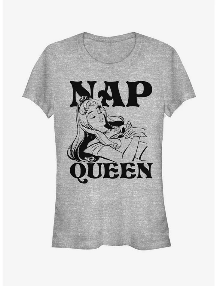 Aurora is a Disney Princess – but she’s also a queen. A Nap Queen! Everybody’s favorite Sleeping Beauty catches some Zzzzs on the front of this fitted heather grey tee.