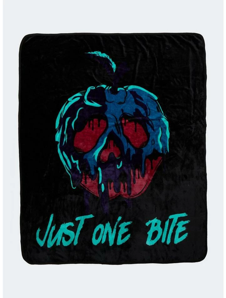 Celebrate 85 years of Walt Disney’s animated classic, Snow White and the Seven Dwarfs, with this super cozy throw blanket! It features a dark and grim image of the iconic poison apple, with “Just one bite” below. Perfect for when you plan on sleeping for a while!