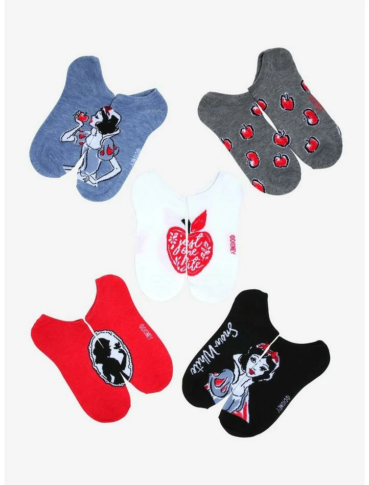 Need to add a royal touch to your outfits? The very first Disney princess is here to help out! Take just one bite out of these enchanting Snow White and the Seven DwarfsΒ no-show socks, featuring watercolor-inspired designs of Snow White and apples on each pair.Β