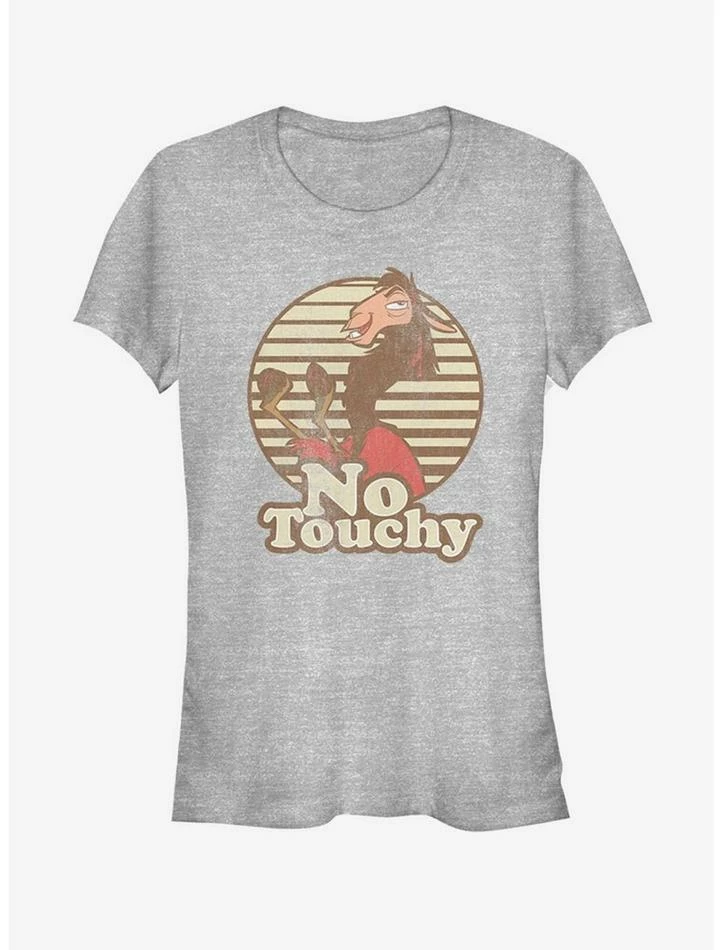 Personal space, hello! Llama Kuzco from The Emperor’s New Groove spells it our for you on this fitted heather grey tee. “No touchy.”
