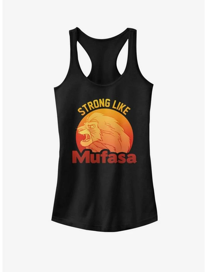 Stand tall with Simba on the Lion King Strong Like Mufasa Black Tank Top and help him rule the Pride Lands! Mufasa’s son, Simba, is printed across this awesome black shirt that reads “Strong Like Mufasa” on the front.