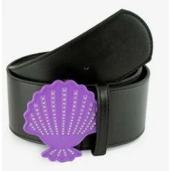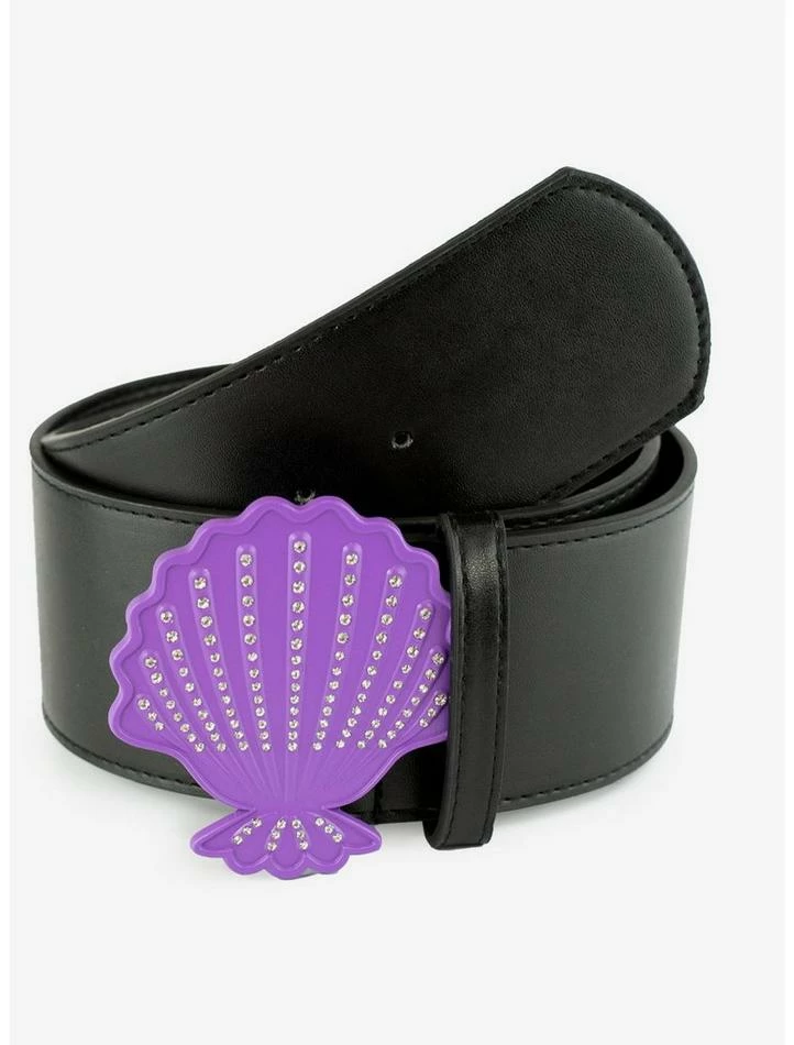 This Disney belt is made from vegan leather and features a sparkly Little Mermaid Ariel Seashell buckle with rhinestones. This belt is 2.75 inches wide and adjusts to fit 28.5 to 38.5 Inches. Does not fit through pant loops.