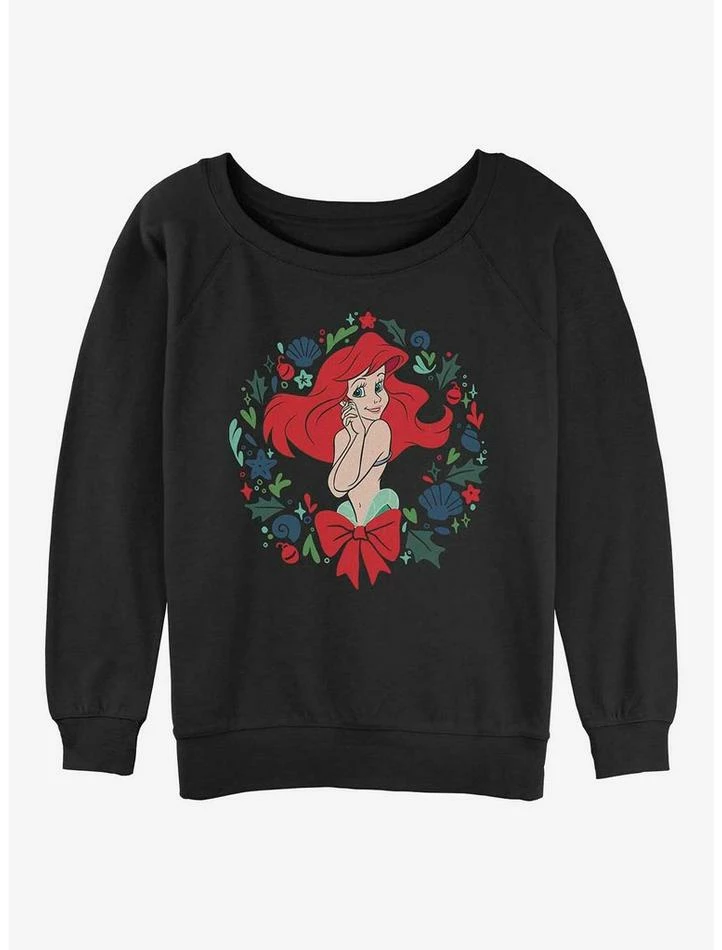 Discount ๐งจ Disney The Little Mermaid Festive Ariel Wreath ๐ง Girls Slouchy Sweatshirt ๐