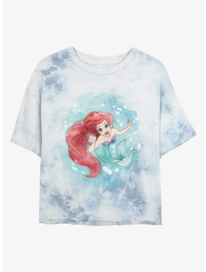 Wholesale 👏 Disney The Little Mermaid Sea Bubbles Tie-Dye 👧 Girls Crop T-Shirt 🎁
